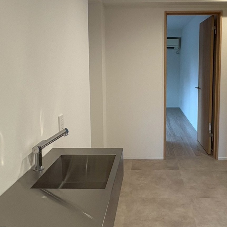 ミラタップ×無印のシンクのみのコンパクトキッチンを共有スペースに設置し、