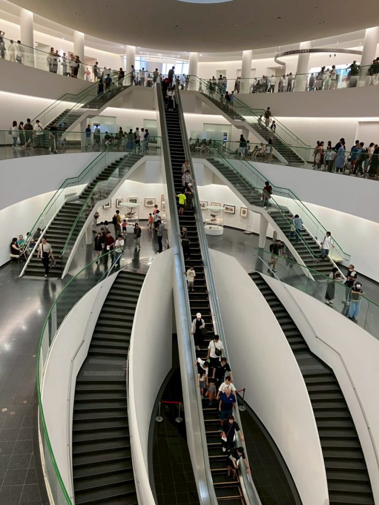 建物自体も面白く、恐竜の卵のようなドーム型の外観や、特によく考えられているなぁと感動したのが、肋骨をイメージしたようなエスカレーター。上から降りるときには気づかなかったんですが、下から見上げたときに衝撃を受けます。なるほど~~(゜゜)と。