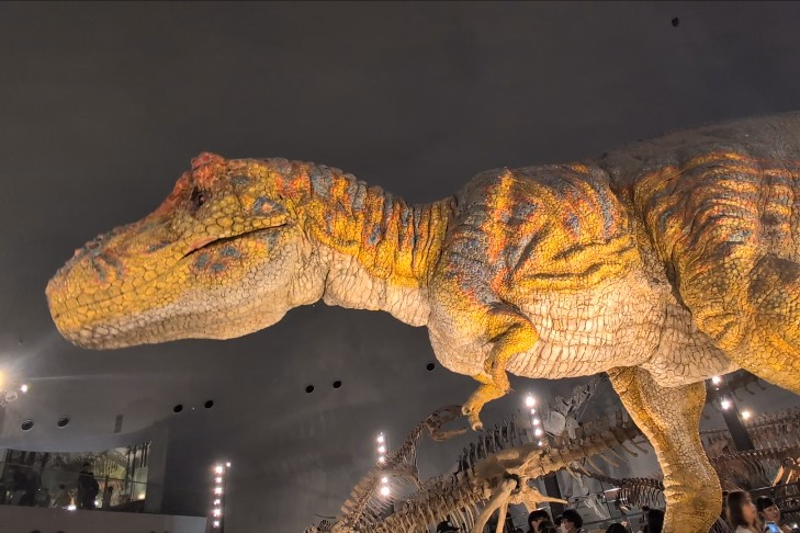 有名な動くティラノサウルスは何度観ても迫力があり、恐竜の実物を見たことはないけれどまるで生きているみたいです。近くに居ると怖いくらい、、恐竜の皮膚の色は想像らしいですがこんな感じの質感なのかなぁ、、